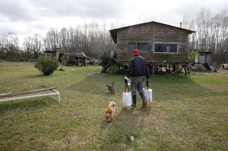 “Desde que comenzó la pandemia no podemos vender pescados ni tampoco madera, estamos desempleados“, cuenta Pedro Cejas,de 70 años, desde la costa del río Paraná de las Palmas. Vive en una precaria casa en el inmenso e inhóspito Delta bonaerense, en la segunda sección del partido de San Fernando. No tiene luz, ni agua potable. Dos veces por semana pasa por su muelle una lancha almacén, pero el dinero es un recurso escaso, como la señal telefónica, y esas provisiones se vuelven inaccesibles. “Nosotros estamos bien, no tenemos miedo”, aclara, despreocupado por los efectos del coronavirus. Un problema mayor enfrenta a su familia: la madera que tala se amontona, al igual que el espinel, cargado de patíes, bagres de mar y dorados. “Necesitamos vender para poder vivir”, mira para abajo.