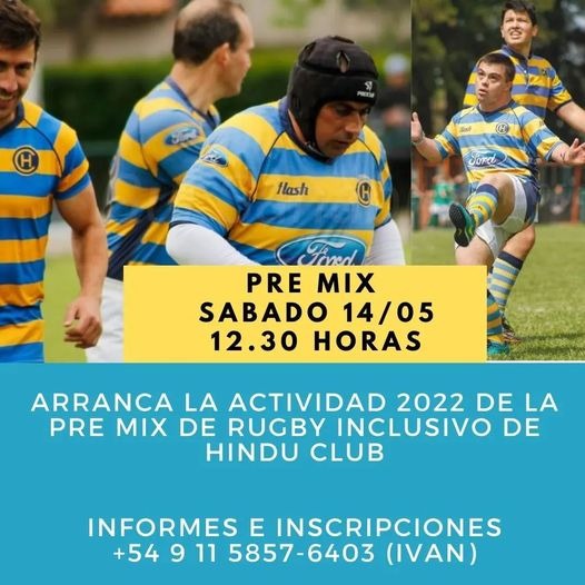 Hindú Club anuncia que desde este sábado 14 de mayo comienza la actividad de la Pre Mix de #rugbyinclusivo de Hindú. El proyecto del equipo de Pre Mix está a cargo de Iván Passini, socio, ex jugador del club y uno de los primeros colaboradores del equipo de Pumpas XV.
